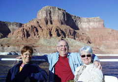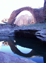 La construction d'un barrage sur le Glenn Canyon (inauguré en 1957, mais il a fallu 17 ans pour le remplir !), a donné naissance à un lac gigantesque et admirable, long de 225 km et découpé en innombrables ramifications, comme des fjords. Le contraste entre les eaux bleues et les roches rouges est saisissant. Une excursion de 5 heures en bateau nous permet d'accéder à une merveille naturelle de plus : le Rainbow Bridge, la plus grande arche naturelle du monde (84 x 80 m). D'innombrables bateaux, house-boats, jet-skis, sillonnent les eaux calmes de cet immense plan d'eau. Conçu à l'origine uniquement pour fournir de l'électricité, il a donné naissance à une intense activité touristique et à une ville-champignon : Page, dont la population double tous les vingt ans.Journée de détente et agréable promenade en bateau sur le Lac Powell
